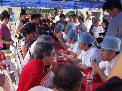 2008年9月20日上午9点,苏州市华夏口腔医院2008年“9.20”爱牙系列活动启动仪式在新市路中信银行广场拉开了帷幕。参加本次活动的有苏州市卫生局疾控处副处长浦俊兴、华夏口腔医院院长姜巧玲、副院长潘灏、苏卫口腔系副书记丁文娟、沧浪区南门街道办事处副主任张宁、党工委副书记胡京伟以及华夏口腔医院的专家和苏卫口腔系的志愿者们。活动现场早早的就聚满了中老年朋友和带着小孩的家长们。
