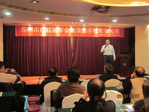 为发展苏州市口腔医学事业,促进本地区口腔医学知识的更新提高, 2013年12月7日,由苏州市口腔医学会主办,我院和苏州市新致美义齿有限公司共同承办的有关“口腔修复新材料”学习班在三元宾馆四楼多功能厅顺利召开。