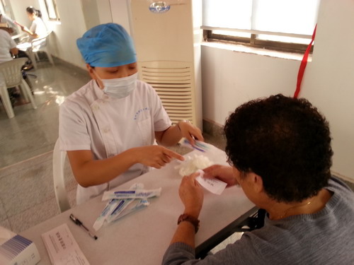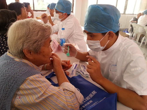在活动现场,我院的医务人员为社区老年居民做了“老年义齿修复”的相关讲座,使居民们对“装假牙”的具体步骤和注意事项有了大体的了解。之后医生们又为现场的居民进行了细致的口腔健康检查,并对提出问题给予了耐心的解答。此次活动受到了社区居民的一致好评。
