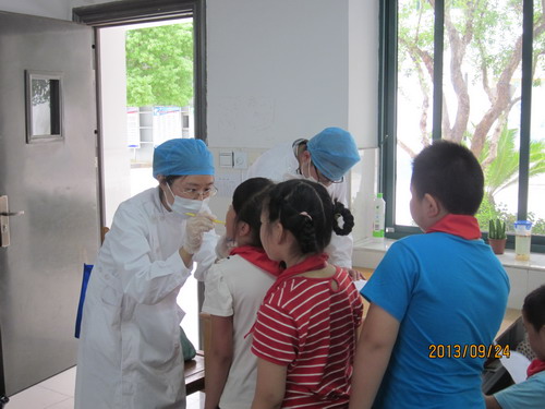 2013年9月24日下午,我院部分医生走进东大街小学,为该校三年级的学生进行口腔卫生健康状况检查和宣教活动。