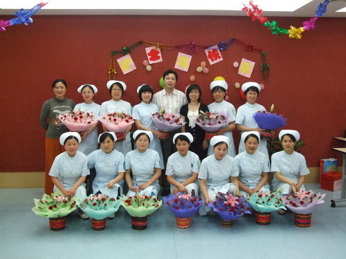 2009年5月12日是国际护士节,5月11日晚在苏州市华夏口腔医院多媒体教室举办庆”5.12”国际护士节文艺晚会。医院姜院长、潘院长莅临现场,医院各科主任及医生也参加了晚会。姜院长在晚会上致辞并祝贺辛勤工作在护理岗位上的全院护士节日快乐。随之,姜院长、潘院长给每位护士送上了一束鲜花。鲜花表达了一份心意,更表达了一份关爱!我们护士将拥有一份阳光的心态,一个亲切的笑容,用温柔的刚强来营造一个健康的工作氛围,让这份关爱撒遍医院每个角落。