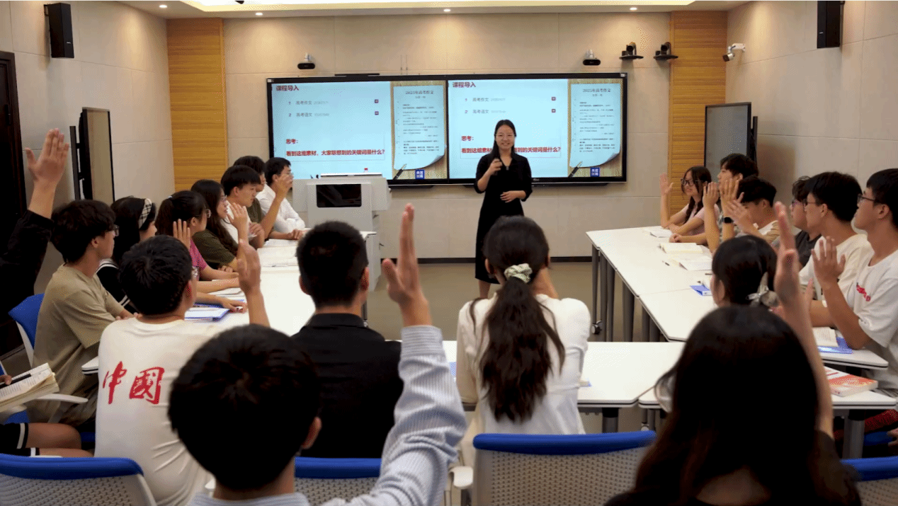 课程导入环节,况贵燕老师以2025年全国一卷高考作文为案例素材,帮助学生抓取关键词,激发学生的理性思考,引导学生认识到通过这组素材,看到的不仅是文学经典的魅力,更是一个民族精神的传承,映照出中华民族在危难中淬炼的精神图谱,从而揭开"历史虚无主义"的迷雾,构建文化自信的精神根基。