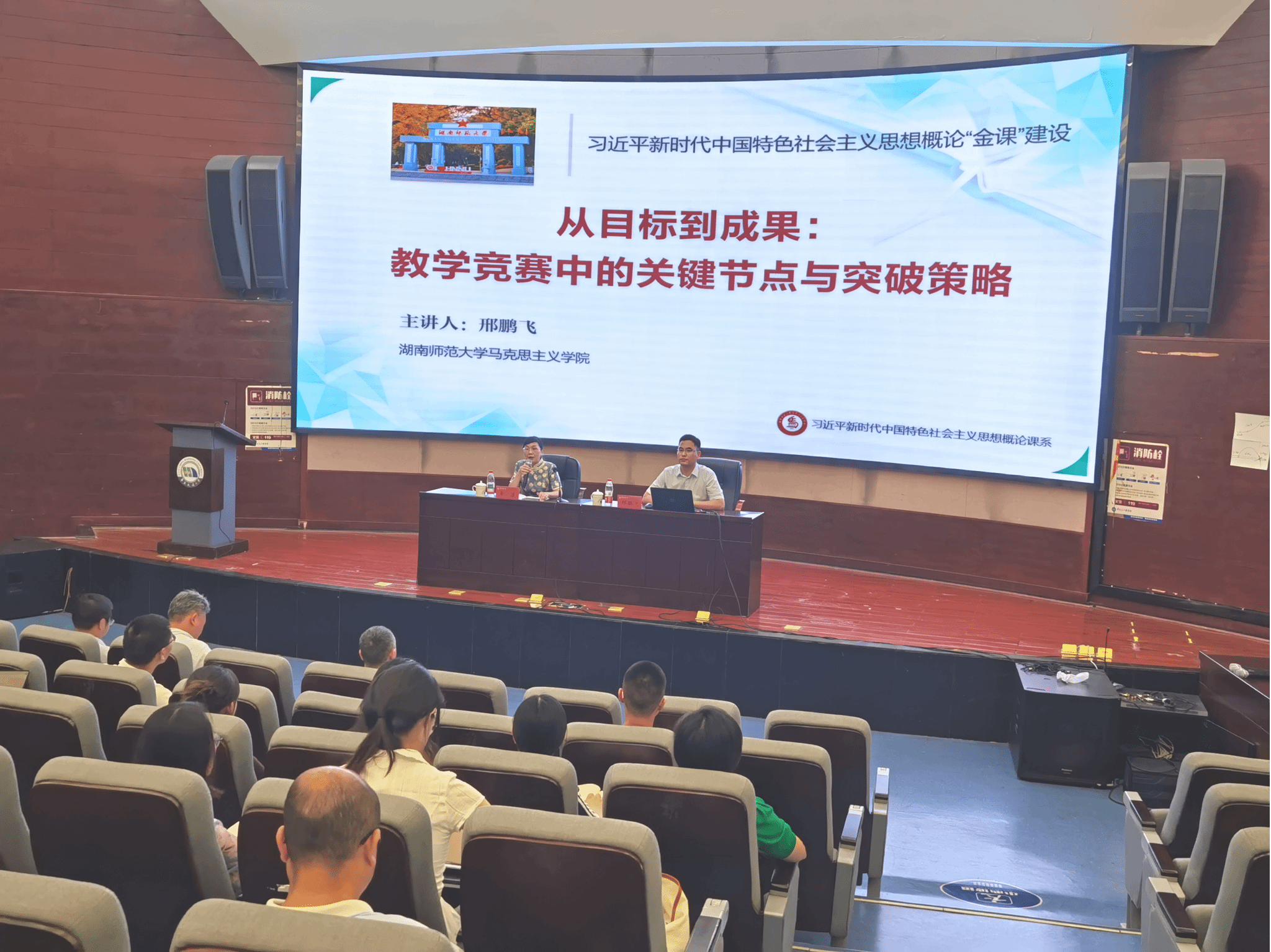 27日上午,湖南师范大学邢鹏飞教授以《从目标到成果:教学竞赛中的关键节点与突破策略》为题进行讲解。他围绕全国高校青年教师教学竞赛的参赛过程、教学设计、教学实施、教学反思、参赛心路历程等展开分析,系统梳理近年来青教赛与教学展示的获奖数据,从赛道参赛规则、教学案例等方面分享经验,剖析大赛规程。结合多年参赛经历,邢鹏飞教授分享备赛历程与团队备赛经验,强调教案撰写、教学案例、教态教姿态等细节重要性,他以教案梳理为中心,分析教学设计的重要性。最后,他紧扣思政课是“讲道理”的课程本质,提出以“讲出彩”激活课堂活力,以学生认同检验育人实效。