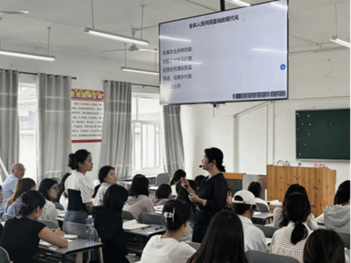 张静讲授了《习近平新时代中国特色社会主义思想概论》第二章“中国式现代化是一种什么样的现代化”。本节内容回答“什么是现代化、各国现代化的特征、中国式现代化的中国特色以及为什么要强调党在中国式现代化建设中的领导地位”四个问题,使学生对中国式现代化有了更深刻的理解。