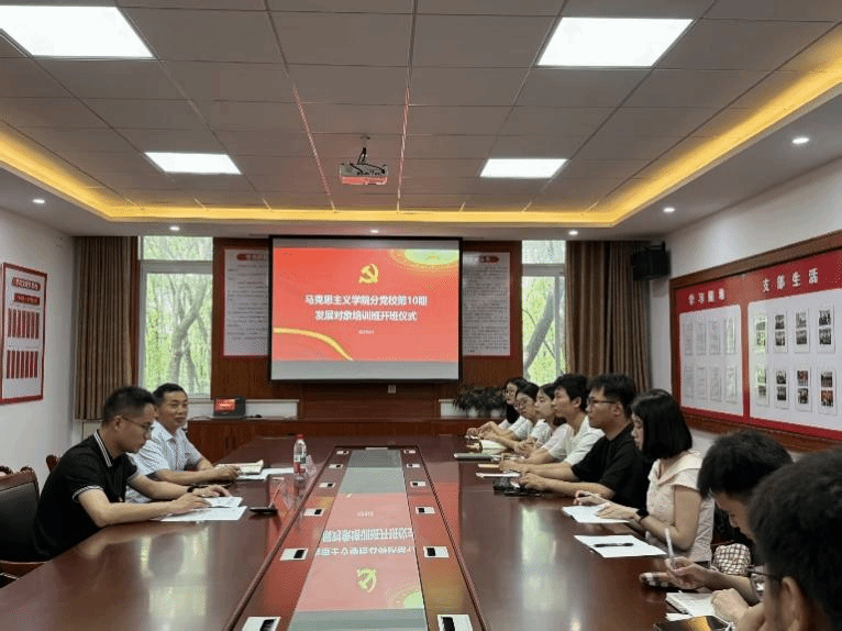 为深入学习贯彻党的二十大和党的二十届三中全会精神,严格把好党员发展“入口关”,进一步提升学院党员发展质量,6月12日,学院党委在36教201会议室举行马克思主义学院分党校第十期党员发展对象培训班开班仪式。研究生支部10名党员发展对象参加,院党委书记陈和金出席并发表讲话,仪式由党委组织员孔柠檬主持。