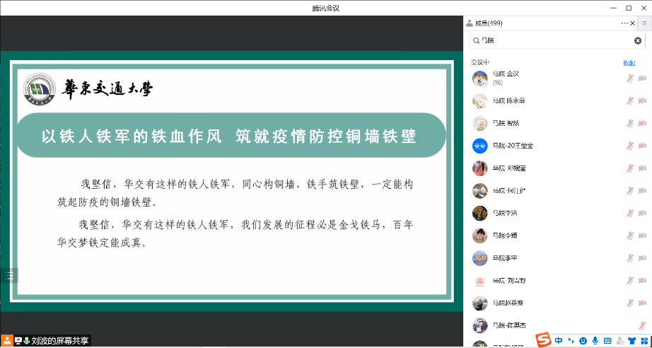 柳书记在疫情防控主题思政课上强调,作为华东交通大学的一份子,我们要发扬铁作风,打赢攻坚战。用自己的行动支持国内快速精准的“动态清零”政策,决不能有一丝松懈。现在校内的大好形势来之不易,是因为有幸有太多的华交铁人铁军在奋不顾身地蹚平一切困难。作为华东交通大学的研究生,我更应该主动承担防疫责任,发扬铁军风范,为打赢这场抗疫攻坚战贡献出自己的力量。