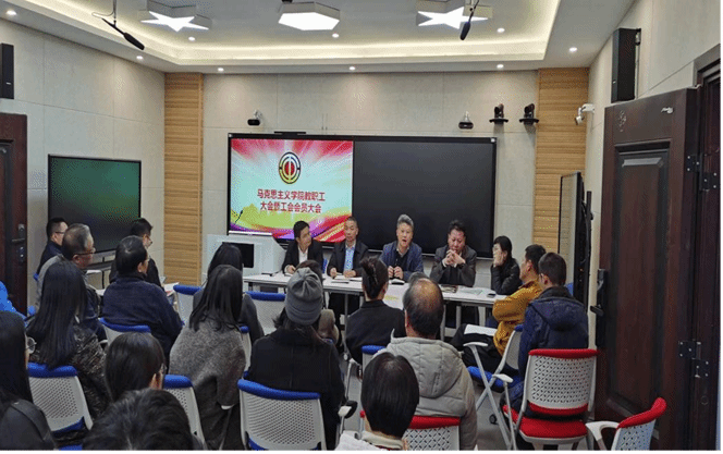 11月29日,在教36栋101室召开2024年马克思主义学院教职工大会暨工会会员大会,会议由院党委委员、副院长刘晓伟主持,院班子成员、全体教职工参加。