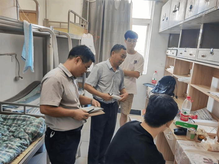 9月15日,为了解2025级新生安全稳定情况,院党委书记陈和金、副院长刘晓伟、辅导员孔柠檬深入宿舍开展安全检查。走访过程中,院领导详细查看寝室卫生、宿舍设施和安全情况,耐心询问大家入学后适应情况,悉心解答同学们的各类问题。每到一处都对新生宿舍进行消防安全检查,叮嘱大家务必增强消防安全意识、反诈意识,确保人身财产安全。