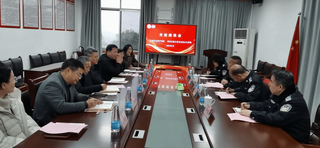 2月6日,江西司法警官学院党委委员、副院长刘文云、思政部主任何细平一行4人来院交流座谈。学院领导班子及部分教师代表参加座谈,会议由学院党委委员、院长张剑锋主持。