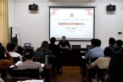 为了认真贯彻中央、省委关于“不忘初心、牢记使命”主题教育的决策部署,11月8日上午,学院党委委员、副院长陈晓江围绕解决马克思主义学院改革发展中存在的突出问题和师生关心的热点难点问题,并结合调研内容,以“提高思想站位,更好地服务学生”为题为全院师生党员上了一堂专题党课。