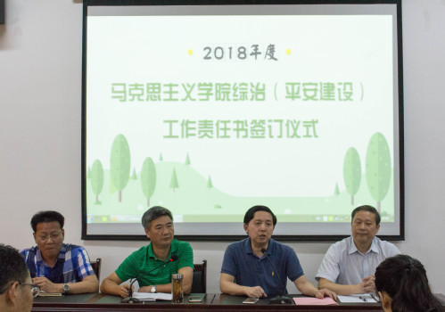 5月25日下午,我院召开“2018年度马克思主义学院综治(平安建设)工作责任书和消防安全责任书签订仪式”。参加本次签订仪式的有院长丁佐湘、党委书记段世年、副院长陈晓江、院长助理张昭国以及全院教职工。仪式由院党委书记段世年主持。