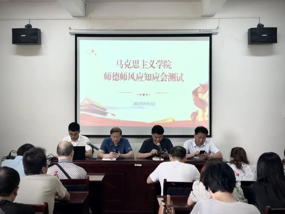 为进一步加强师德师风建设,规范教师言行,引导广大教师以立德树人为根本任务,做有理想信念、有道德情操、有扎实学识、有仁爱之心的好老师, 9月3日下午,马克思主义学院组织全体教职工在306会议室参加“师德师风应知应会考试”。