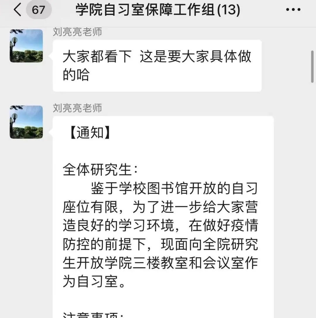 作为学院党政办主任,刘亮亮整天盯着手机,生怕错过了重要信息,尽心做好数据统计、组织核酸检测、购买防疫物资等工作,上报的数据从未发生过一次错误。作为研究生党支部书记,他及时组织成立了“研究生党员突击队”,物资发放、自习室保障、代领快递与代购、卫生清扫等志愿服务活动一应俱全,带领研究生党员冲锋在前,让“党旗在疫情防控一线高高飘扬”。此外,作为一名思政课教师,他精心准备、用心上好战“疫”思政大课,既坚定了同学们战胜疫情的信心,也温暖了人心。
