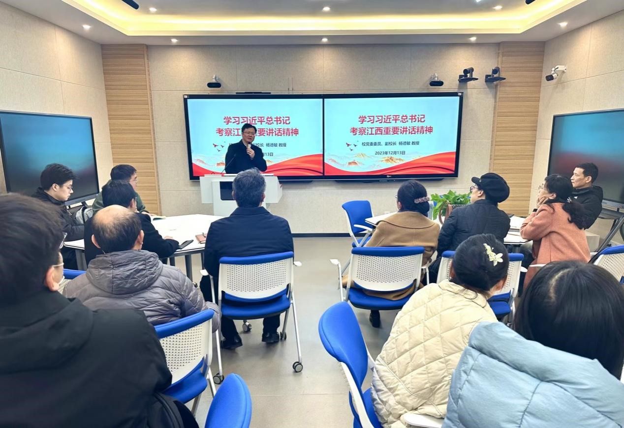 为深入学习贯彻习近平总书记考察江西重要讲话精神,引导广大党员干部充分认识学习宣传习近平总书记考察江西重要讲话精神的核心要义、精神实质和实践要求,准确把握习近平总书记对江西工作的重要要求,12月13日,校党委委员、副校长杨德敏为学院全体教师宣讲习近平总书记考察江西重要讲话精神,学院党委书记张剑锋主持宣讲会,学院班子成员、全体教师聆听宣讲报告。