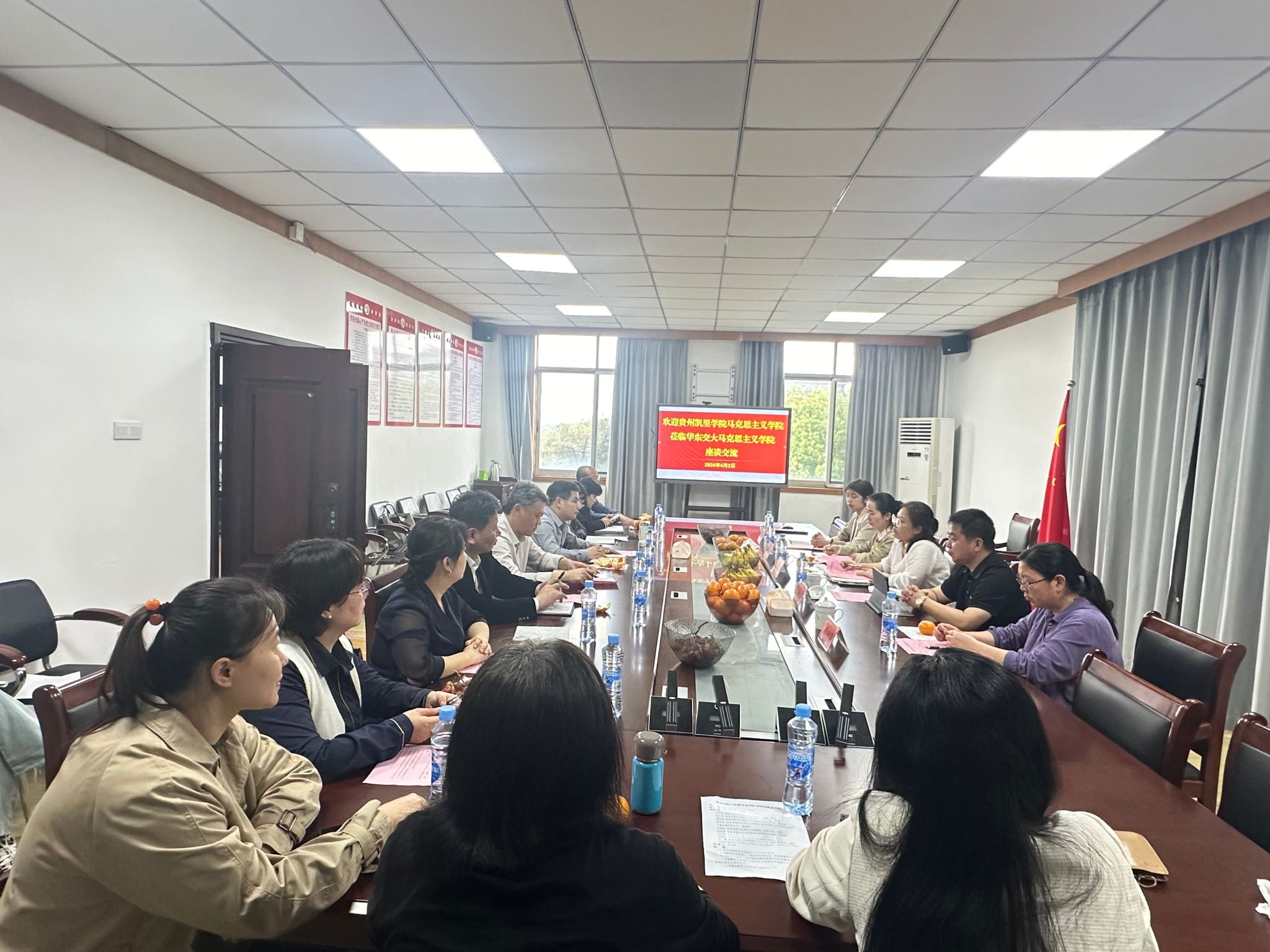 4月2日,贵州凯里学院马克思主义学院院长龙正凤一行5人来院交流座谈。院党委书记张剑锋,副院长张昭国、刘晓伟、李曦及各教研室主任、各研究中心负责人参加座谈,会议由张剑锋主持。