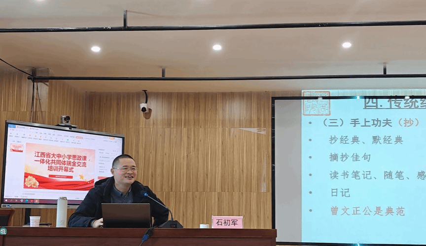 华东交通大学石初军,邓锦芸,李曦围绕“马克思主义基本原理与中华优秀传统文化相结合”主线,分别以《深刻理解“两个结合”,把握中国特色社会主义的根和魂——兼谈中华传统经典阅读推广》《〈中庸〉思想对小学生思想政治教育的启示》《不忘初心 立德树人——从传统文化谈如何做一个好的思想政治理论课教师》三个主题开展专题讲座。