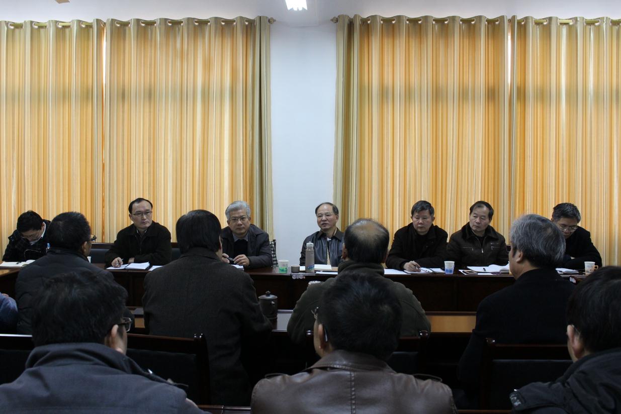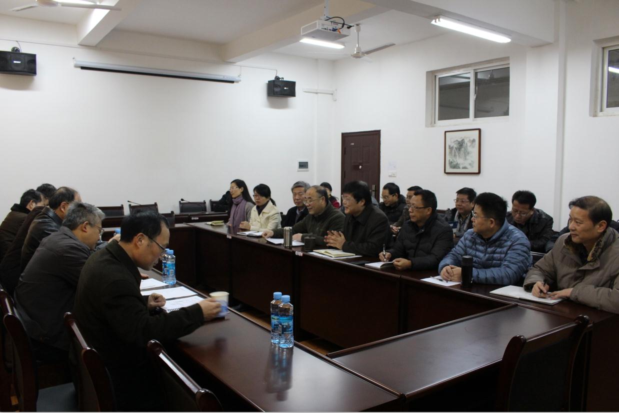 2015年12月31日上午8:30,校党委书记万明、副书记汪立夏,及两办、人事处、教务处、研究生院负责人来我院调研。我院院领导班子成员、党委委员、教授委员会主席、工会主席、院办、教研室主任、学科负责人、教师代表:孙芳兰、舒建国、王俊文、徐杰玲,参加了此次调研座谈会。