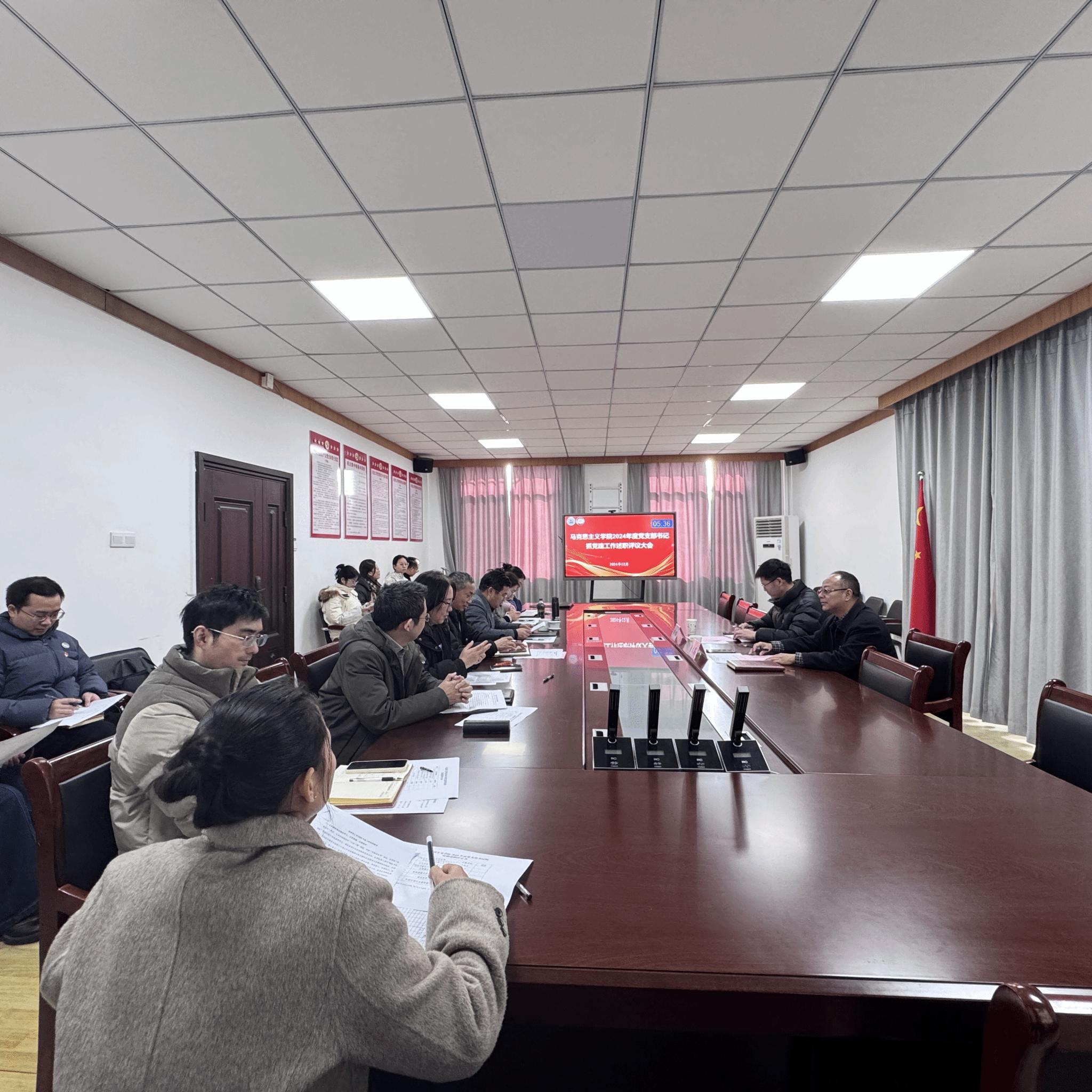 为进一步加强学院基层党建工作,总结经验,查摆不足,12月24日下午,学院在36栋301召开2024年度基层党支部书记抓党建工作述职评议会议,院党委书记陈和金,各党支部书记、支部委员代表参加会议,体育与健康学院党委书记黄文昌、运动训练党支部书记简鹏到会督导。会议由院党委委员、副院长刘晓伟主持。