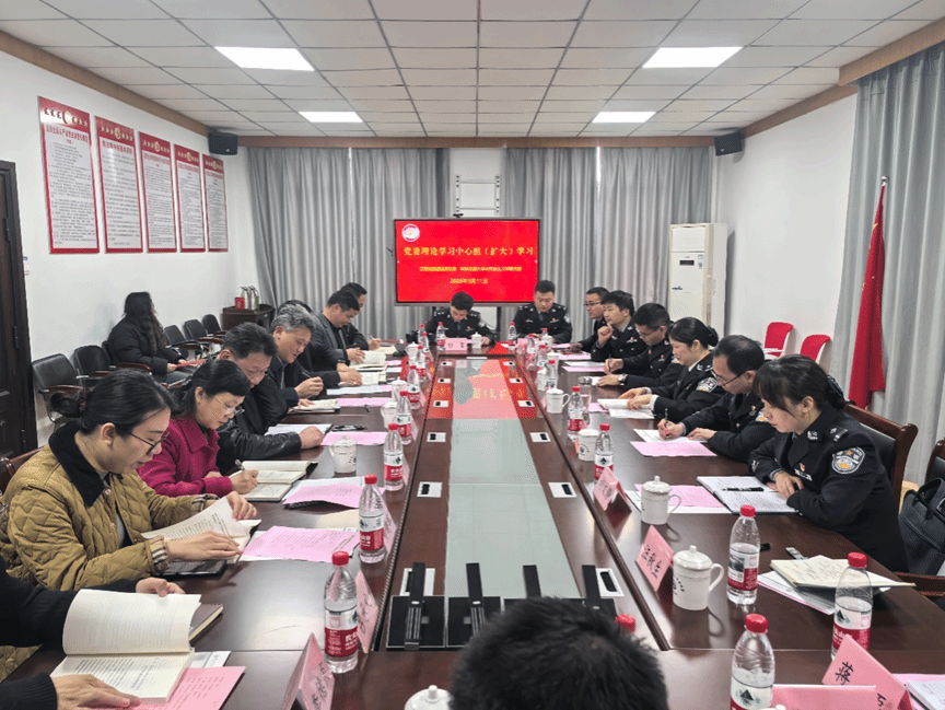 随后,双方在马克思主义学院开展党建工作交流座谈,联合开展党委理论学习中心组(扩大)学习会。省新康监狱党委副书记、政委戴玲,省新康监狱党委委员、副监狱长徐勇,马克思主义学院院长张剑锋,学院领导班子成员,双方党支部书记及师生民警代表共20余人参加,会议由陈和金主持。