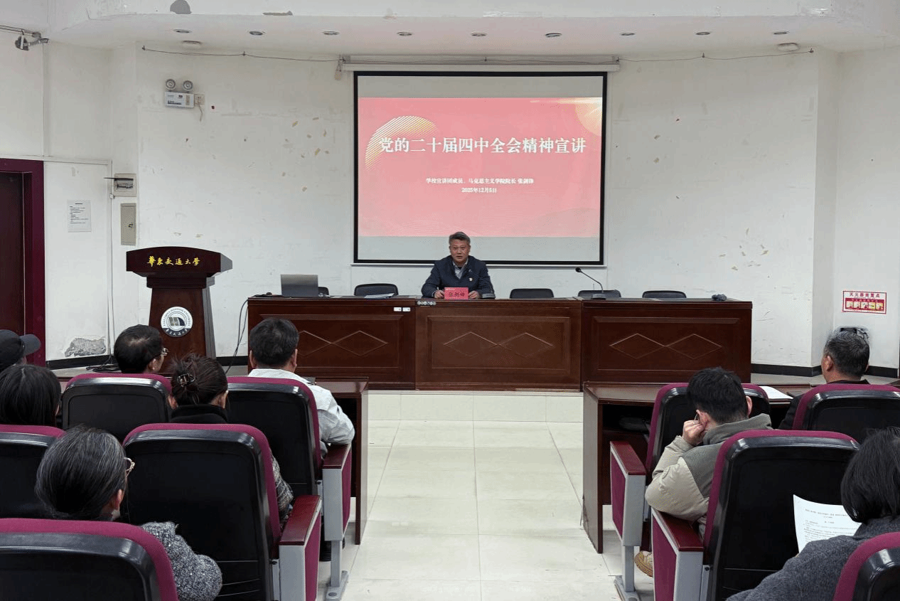 为深入学习贯彻党的二十届四中全会精神,系统把握中国式现代化的理论与实践要求,激励广大师生筑牢信仰根基、挺膺时代担当,12月5日,院长张剑锋为学院师生开展党的二十届四中全会精神宣讲。