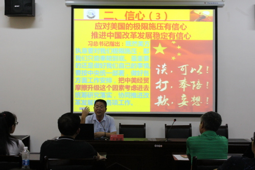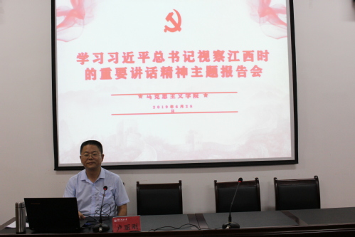 根据省委、省教育工委、学校党委统一部署,6月28日,马克思主义学院召开全院师生专题学习会,邀请卢丽刚教授作“习近平总书记视察江西重要讲话精神”辅导报告,会议由院党委书记段世年主持。