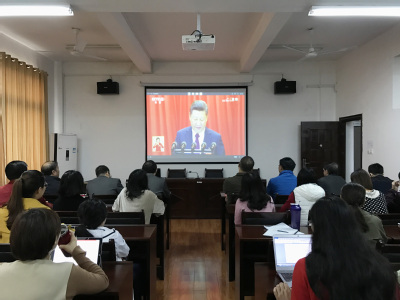 上午9时,马克思主义学院丁佐湘院长带领学院教职工、在校研究生,通过网络平台集体观看了党的十九大开幕式盛况。在认真听取习近平总书记的报告后,大家倍受振奋,反响热烈。