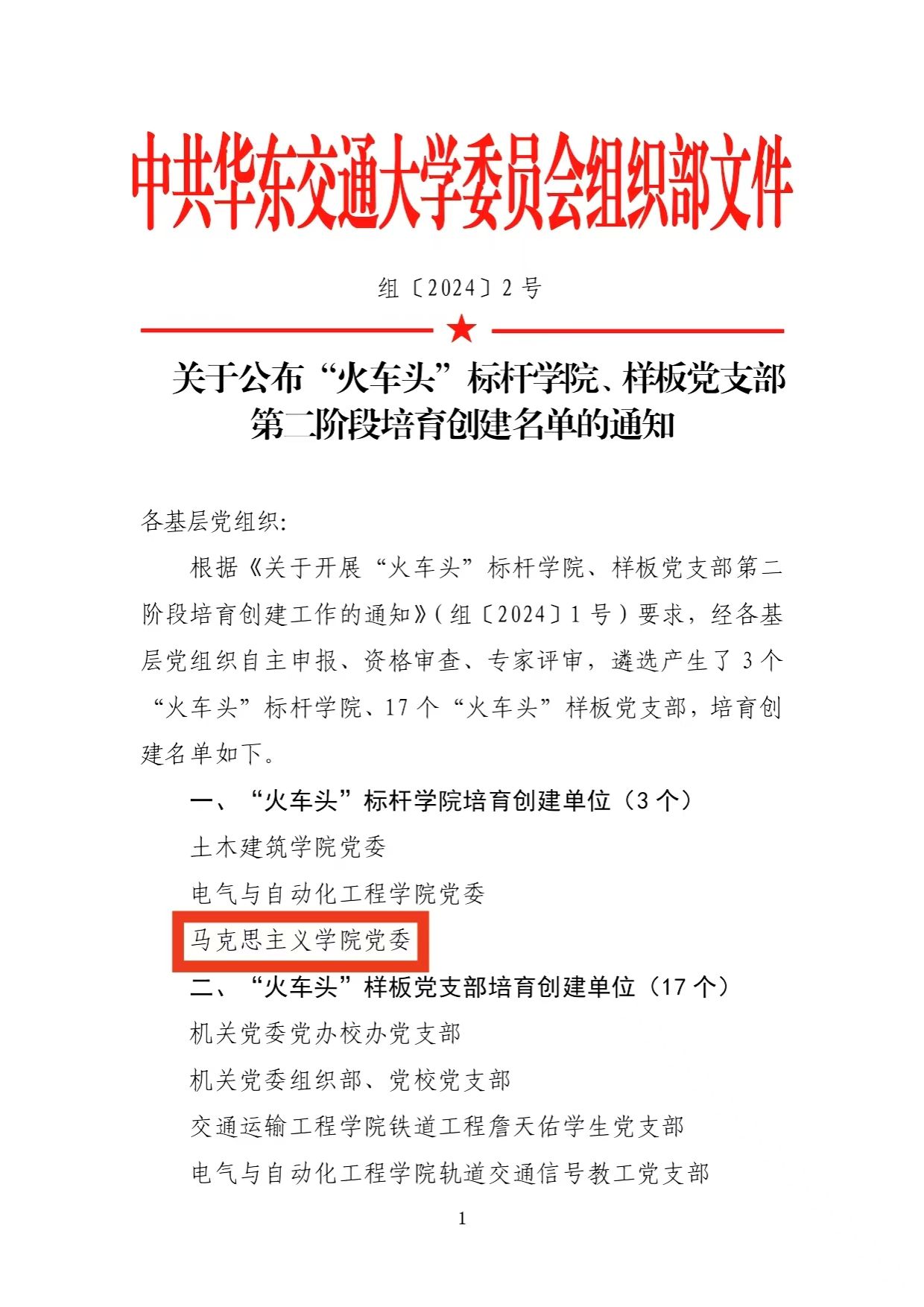 根据《关于开展“火车头”标杆学院、样板党支部第二阶段培育创建工作的通知》(组〔2024〕1 号)要求,经各基层党组织自主申报、资格审查、专家评审,遴选产生了3 个“火车头”标杆学院、17个“火车头”样板党支部。学院党委、研究生党支部分别获评“火车头”标杆学院、“火车头”样板党支部培育创建单位。