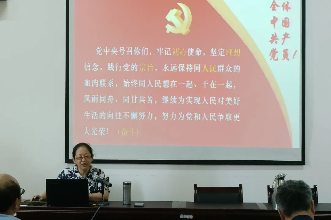 校党史学习教育宣讲团成员、支部党员杨霞飞以《响应伟大号召、奋进新征程、建功新时代》为题,做了主题发言。杨霞飞认为,习近平总书记在“七一”重要讲话中提出“中国共产党团结带领中国人民又踏上了实现第二个百年奋斗目标新的赶考之路。”是党中央向全党和全国人民发出的伟大号召。她表示作为一名共产党员,要站在“实现中华民族伟大复兴”的高度上,深刻领会习近平总书记重要讲话精神,要响应伟大号召,在新的历史征程上贡献自己的力量,使自己无愧于人民,无愧于新时代。