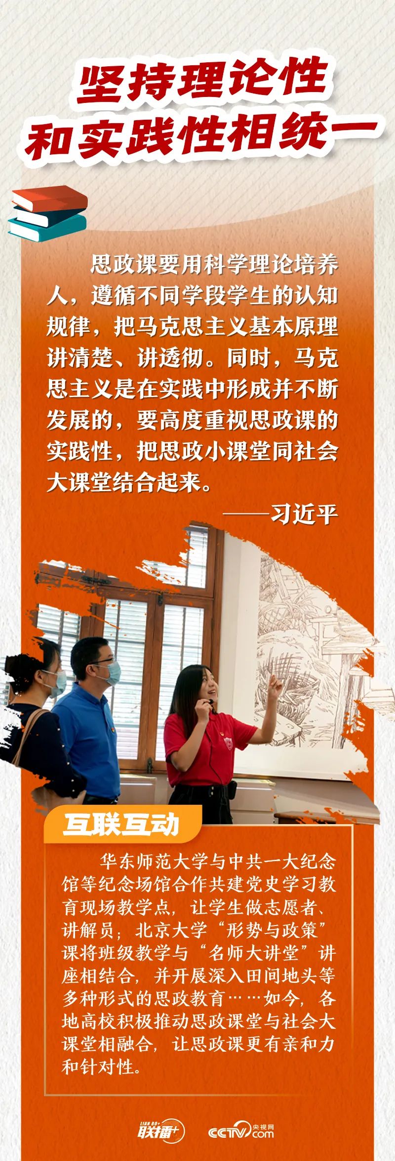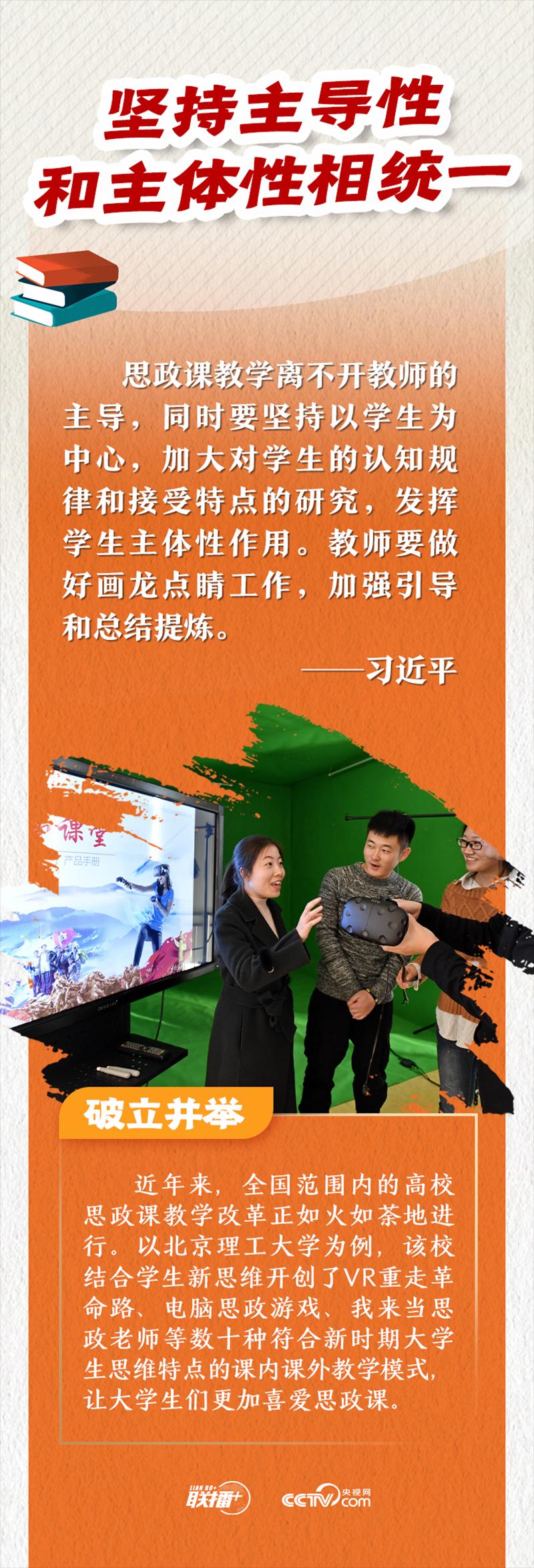 习近平总书记指出,推动思想政治理论课改革创新,要不断增强思政课的思想性、理论性和亲和力、针对性,并提出“八个相统一”教学要求。“八个相统一”言简意赅,深刻精辟,为推进新时代思政课建设指明了方向。