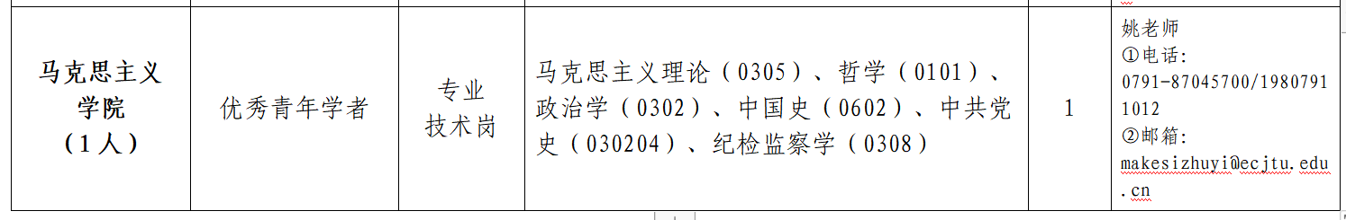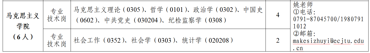 华东交通大学马克思主义学院2025年拟引进博士6人,高层次人才1人。相关专业需求如下: