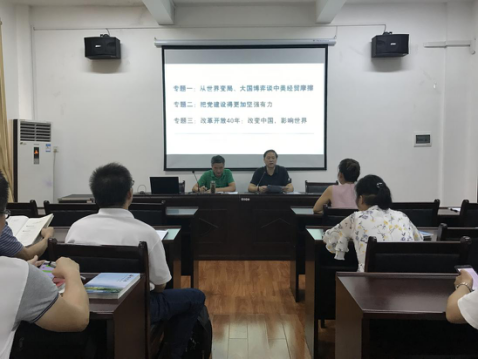 陈晓江副院长就确立本学期“形势政策与省情教育”三个专题:从世界变局、大国博弈谈中美经贸摩擦、把党建设得更加坚强有力、改革开放40年:改变中国,影响世界,作了简要的说明,特别是对开展“中美贸易摩擦辨析”专题教学进行了认真的布置,强调了纪律,并对本课程的教学目的、教学内容、教学方法、课程考核等进行了详细的部署,同时,对上学期在教学过程中出现的问题提出了针对性的改进意见。