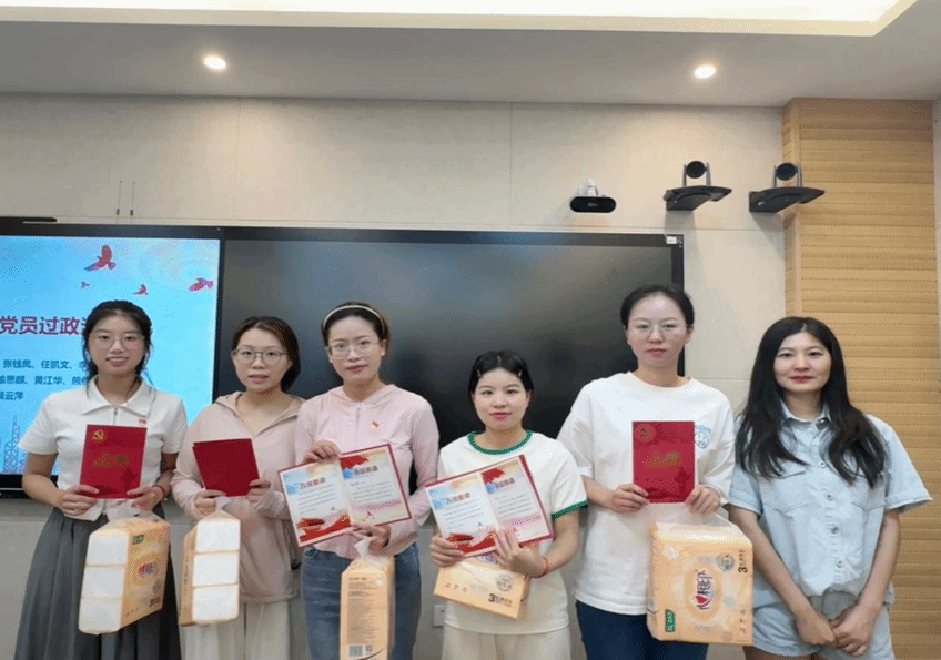 分享交流结束后,全体党员共同为1至6月入党的党员同志过政治生日,并颁发礼品、合影留念。