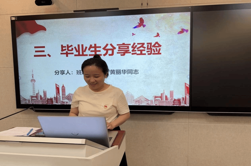生日仪式过后,由毕业生党员代表班印正和黄丽华分享经验。班印正同志为大家分享了考博经验,分别从博士申请流程、博士申请时间点、申请博士需要准备的材料等方面来切入,同大家分享考博资料,并且他也表示既然选择了远方,便只顾风雨兼程。