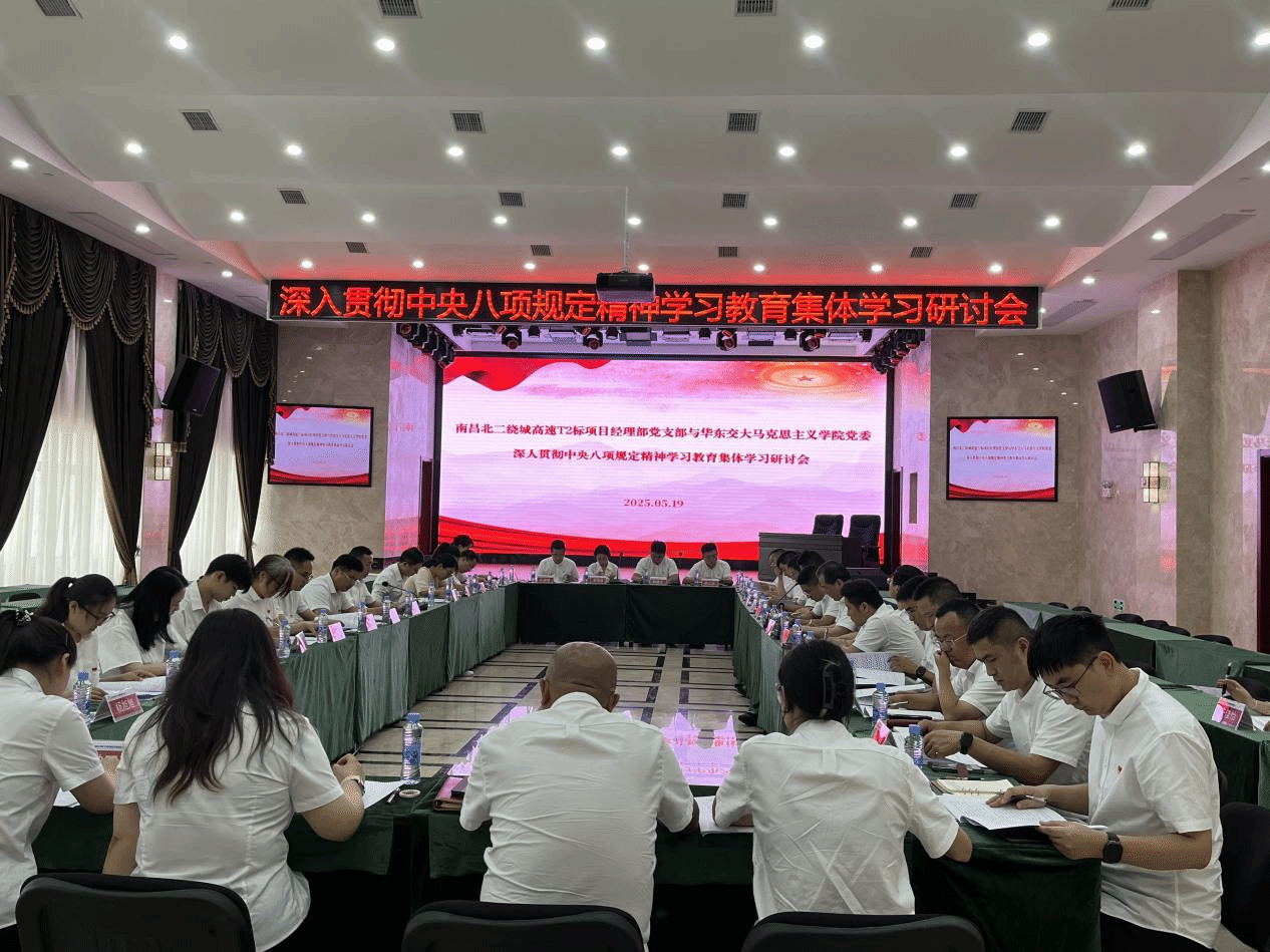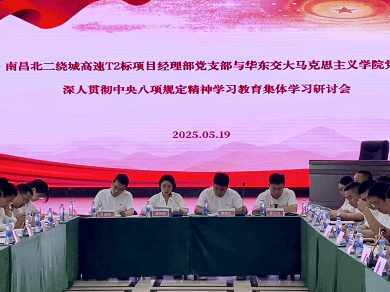 为持续开展深入贯彻中央八项规定精神学习教育,以联建共建深化主题教育成效,5 月19日,华东交通大学马克思主义学院与南昌北二绕城高速 T2 标项目党支部开展联建共建学习教育,通过书记领学、党员交流、知识测试、警示教育等形式,筑牢作风建设思想防线。