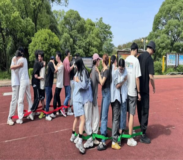 “一圈到底”项目时,呼啦圈在同学们手拉手的“人链”中灵活穿梭,他们手牵手,用身体进行默契配合,有人像蛇精附体,有人则像木头人,逗得队友和观众欢笑不断。