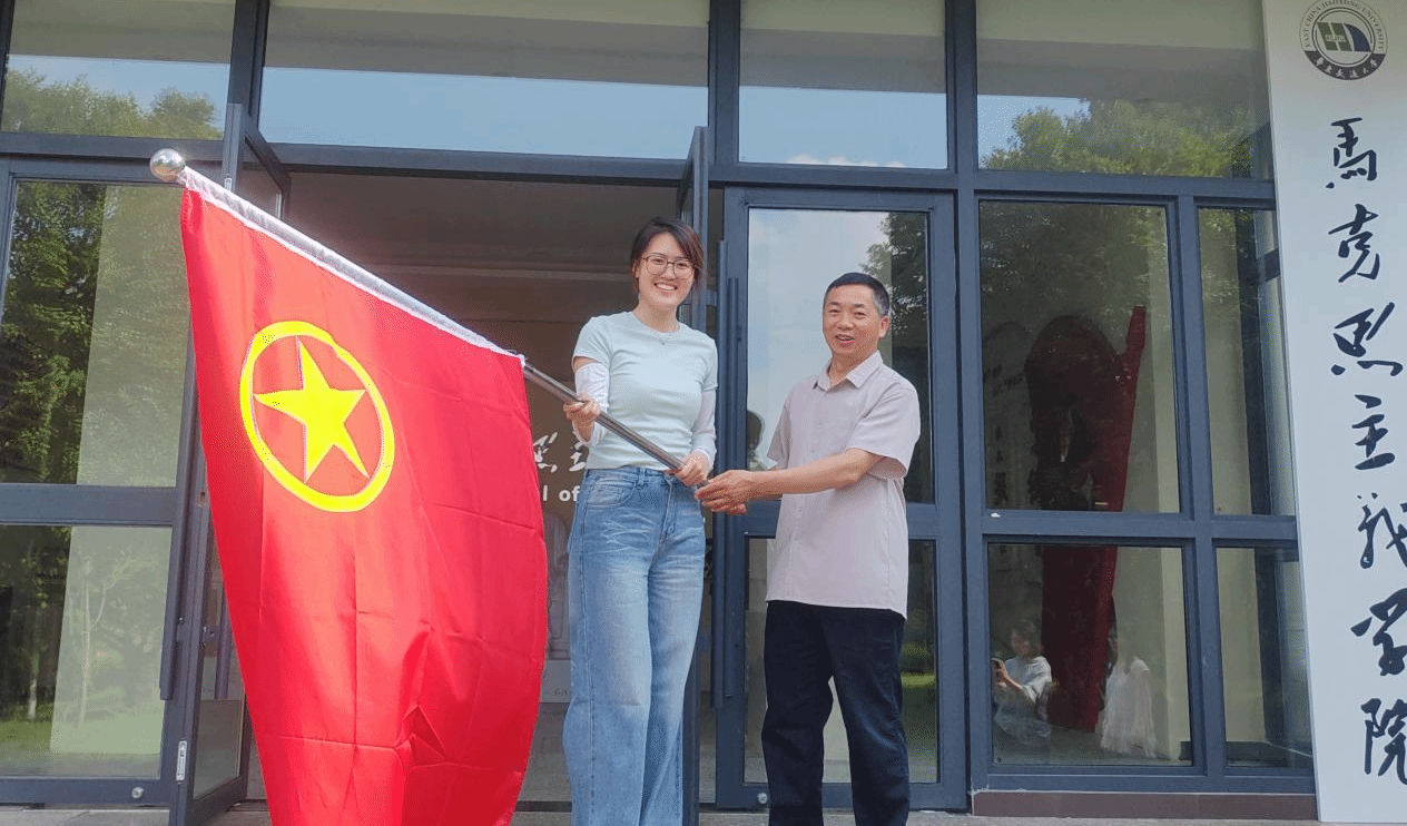 陈和金为团队授旗并叮嘱实践团:“作为马院学子,要一马当先,用脚步去丈量祖国大地,触摸时代脉搏,倾听人民心声,在实践中受教育、长才干、做贡献,展现交大形象和马院担当。”同时也祝愿实践团队度过一段有声有色、有滋有味、有模有样的青春之旅。