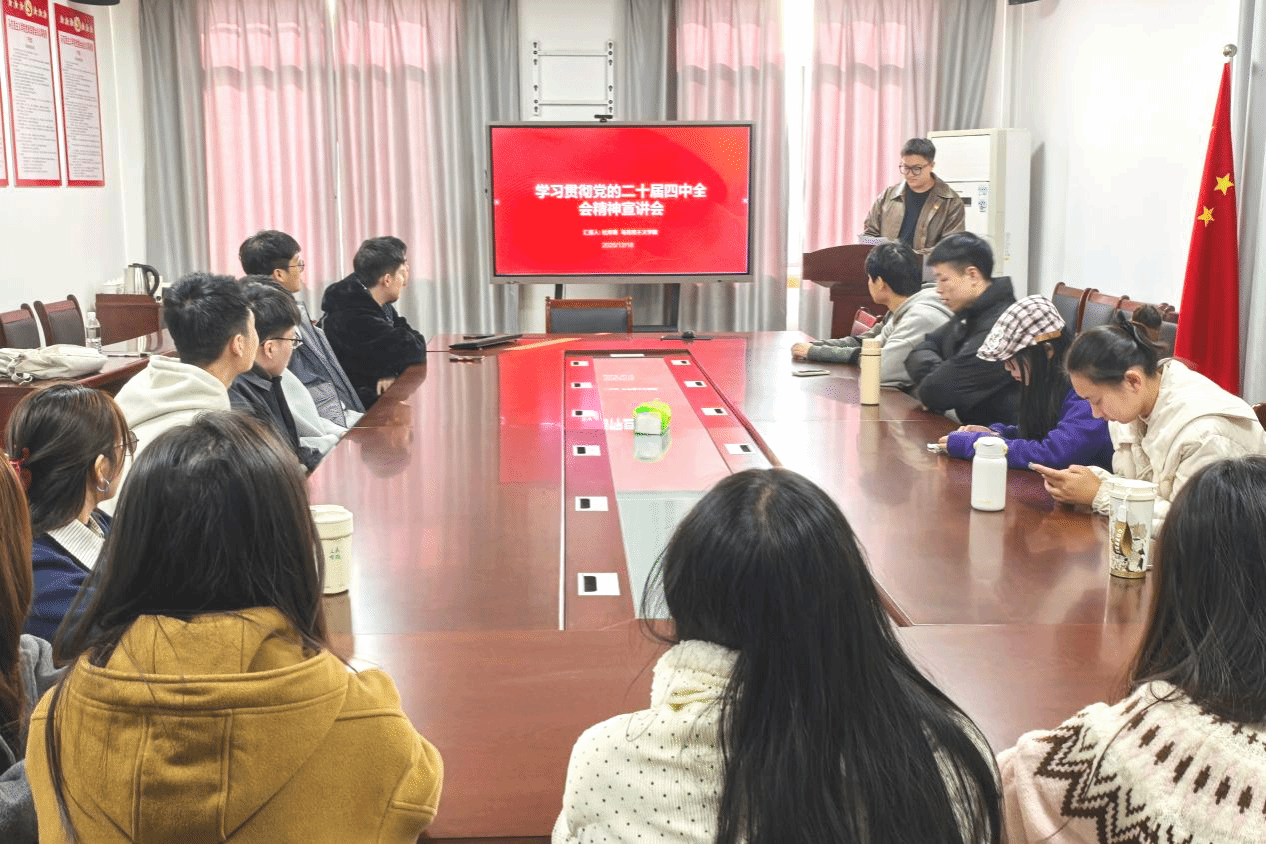 为深入学习贯彻党的二十届四中全会精神,引导学院学子贡献青春力量、践行使命担当,2025年12月18日,马克思主义学院举办学习贯彻党的二十届四中全会精神宣讲会,由“火车头”青年讲师团成员杜岸霖进行宣讲。
