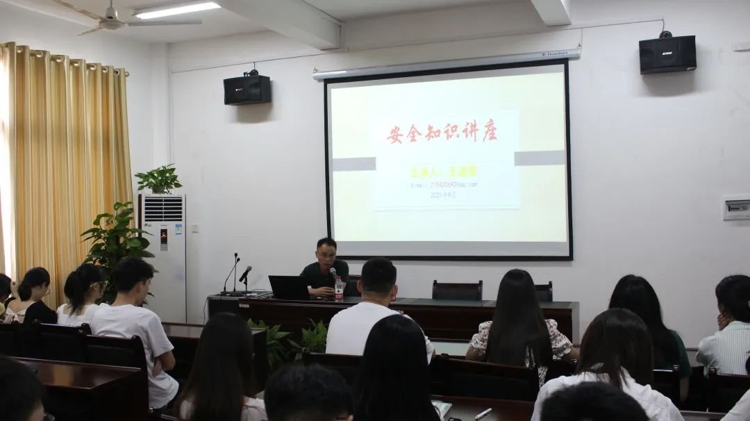 为进一步强化和提高全院师生的安全意识,努力打造平安和谐的校园,营造安全健康的育人环境,9月10日,我院邀请校保卫处副处长王迪旻为2021级研究生新生开展安全知识讲座,副院长张昭国主持会议,2021级研究生新生全体参与。