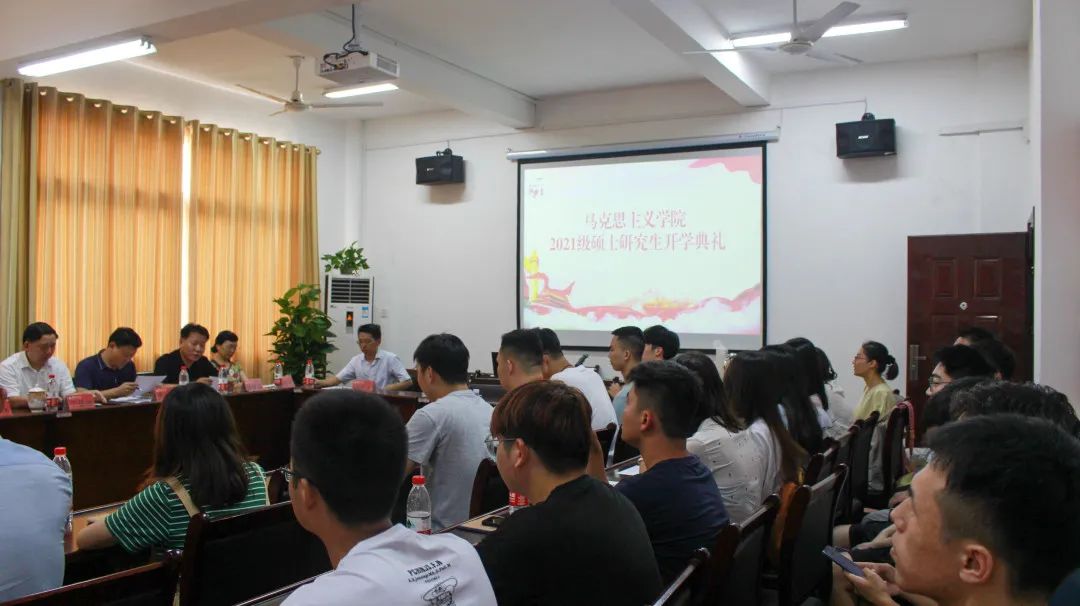 金风又送英才至,丹桂今日复馨香。9月4日上午,在学院306会议室举行了马克思主义学院2021级新生开学典礼。院长丁佐湘、院党委书记张剑锋、副院长张昭国,各学科负责人、硕士生导师、2021级全体新生及老生代表参加。典礼由副院长张昭国主持。