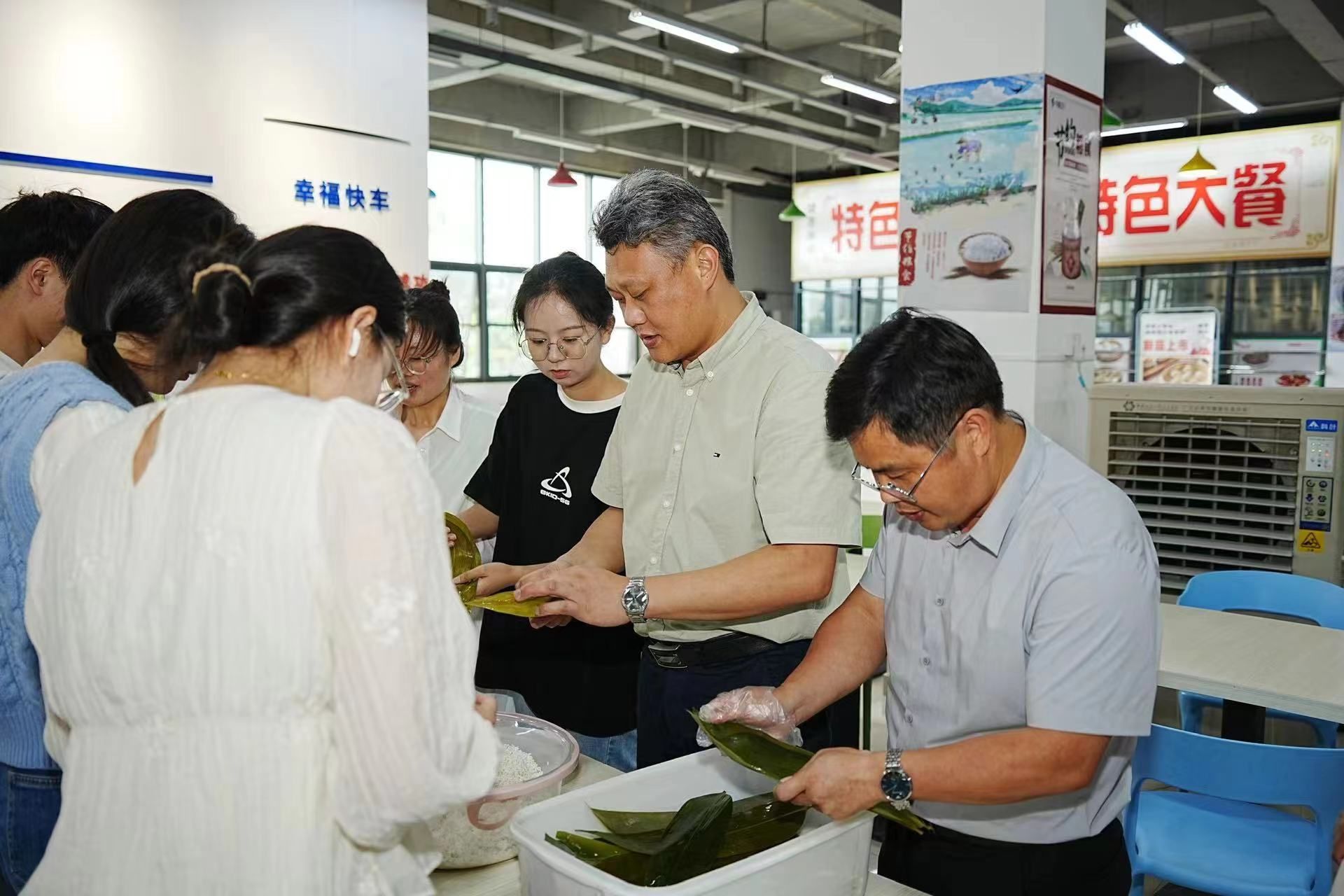 在端午节即将来临之际,为了更好地传承和弘扬中华民族的灿烂文化,激发同学们对传统节日的热爱和理解,6月7日下午,马克思主义学院工会、团委、研究生会在北区第四食堂一楼组织了一场别开生面的包粽子活动。