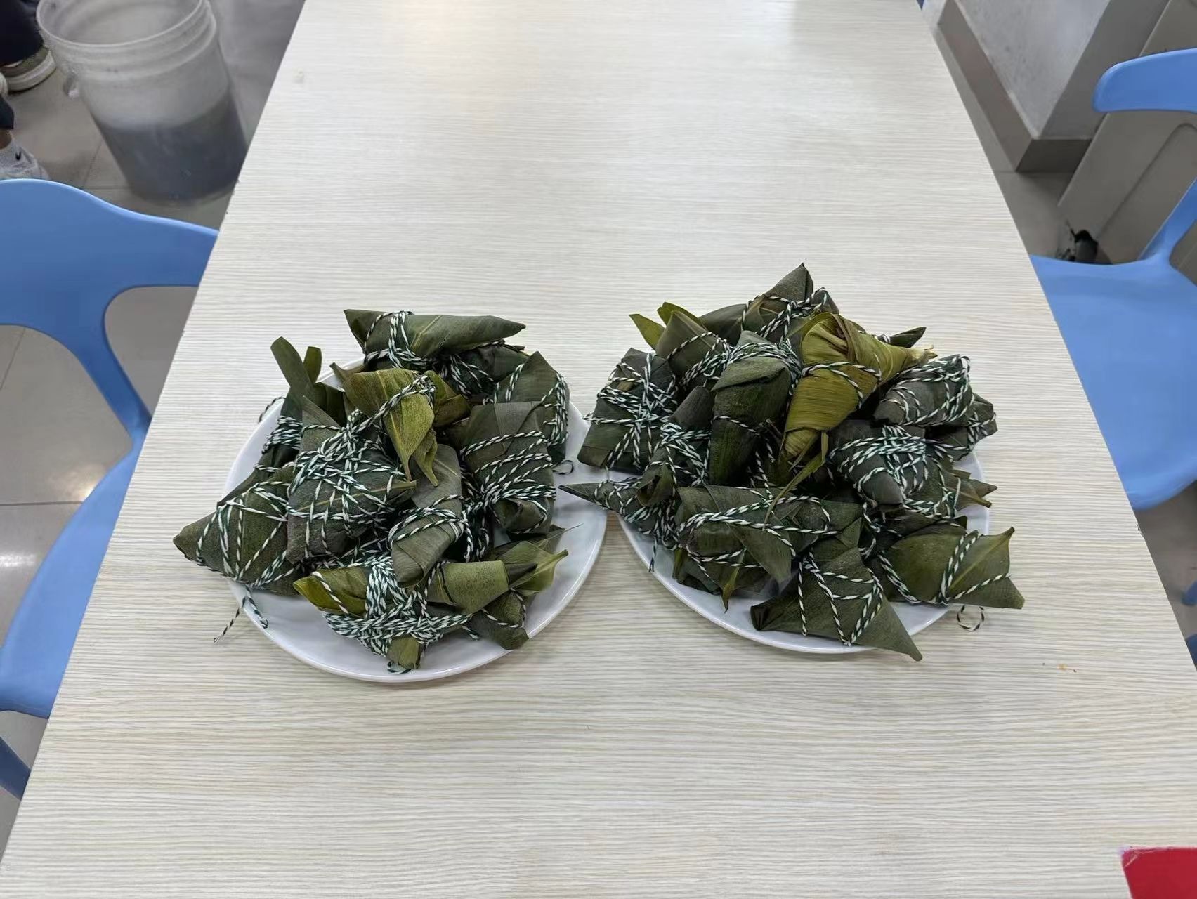 在热闹的气氛中,大家各展所长,分工合作,将粽叶挽成漏斗状,填上糯米、馅料、扎绳,再封口捆扎,巧手翻飞,将节日的祝福包裹进一个个饱满可爱的粽子中。不一会儿,三角的、四角的、长条的,形状各异的粽子在大家的互帮互助中完成了。活动过程中,大家彼此交流包粽子的手法和技巧,一派欢声笑语,洋溢着迎接端午佳节的浓厚氛围。