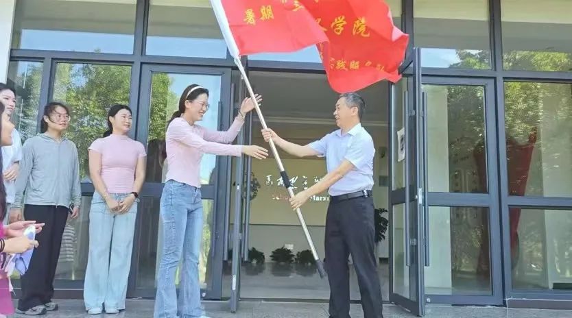 为深入学习贯彻习近平新时代中国特色社会主义思想和党的二十大精神,学习宣传贯彻习近平总书记关于青年工作的重要论述和考察江西重要讲话精神,聚焦“走在前、勇争先、善作为”的目标要求,引导和帮助青年学生在社会课堂中受教育、长才干、作贡献,争做有理想、敢担当、能吃苦、肯奋斗的新时代好青年,7月4日,马克思主义学院在教学楼36栋举行2024年暑期“三下乡”社会实践活动出征授旗仪式。院党委书记陈和金,团委书记丁丽,组织员、辅导员孔柠檬以及团队全体成员参加本次仪式。