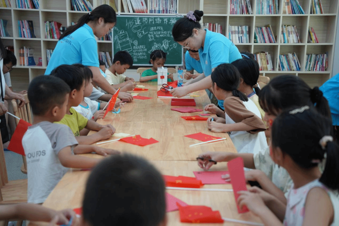 7月6日,华东交通大学马克思主义学院“青春逐梦·红色基因传承”社会实践团在指导老师丁丽的带领下来到新城社区党群服务中心,为社区的留守儿童们开展了“防溺水、折纸手工、红歌合唱”教育实践活动。