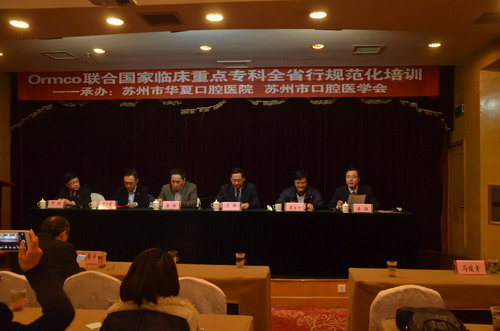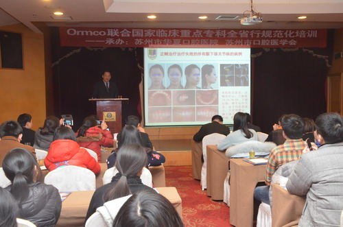 由江苏省口腔医学会、江苏省口腔医院主办,苏州市口腔医学会、苏州市华夏口腔医院承办的国家临床重点专科“环省行”―苏州市口腔正畸规范化培训班,于2016年1月14日上午8:30分在三元宾馆五楼会议室举行。此次学习活动引起了省、市多家单位的领导和专家们的重视,南京医科大学副校长、江苏省口腔医学会会长、江苏省医院管理协会口腔分会主任委员、博士生导师王林教授,苏州卫生职业技术学院党委书记崔伟同志,苏州市卫计委陈小康副主任,南京医科大学附属口腔医院副院长、硕士生导师严斌主任医师,苏州市口腔医学会会长、苏大附一院口腔科主任葛自力主任,作为开幕式嘉宾先后对活动进行致辞,我院执行院长潘灏主持了此次活动。因培训名额有限,来自苏州大市范围内的近150余名口腔正畸临床医务人员通过前期的踊跃报名最终获得了此次难得的学习机会,在专业技术上获得了最大化的收益。